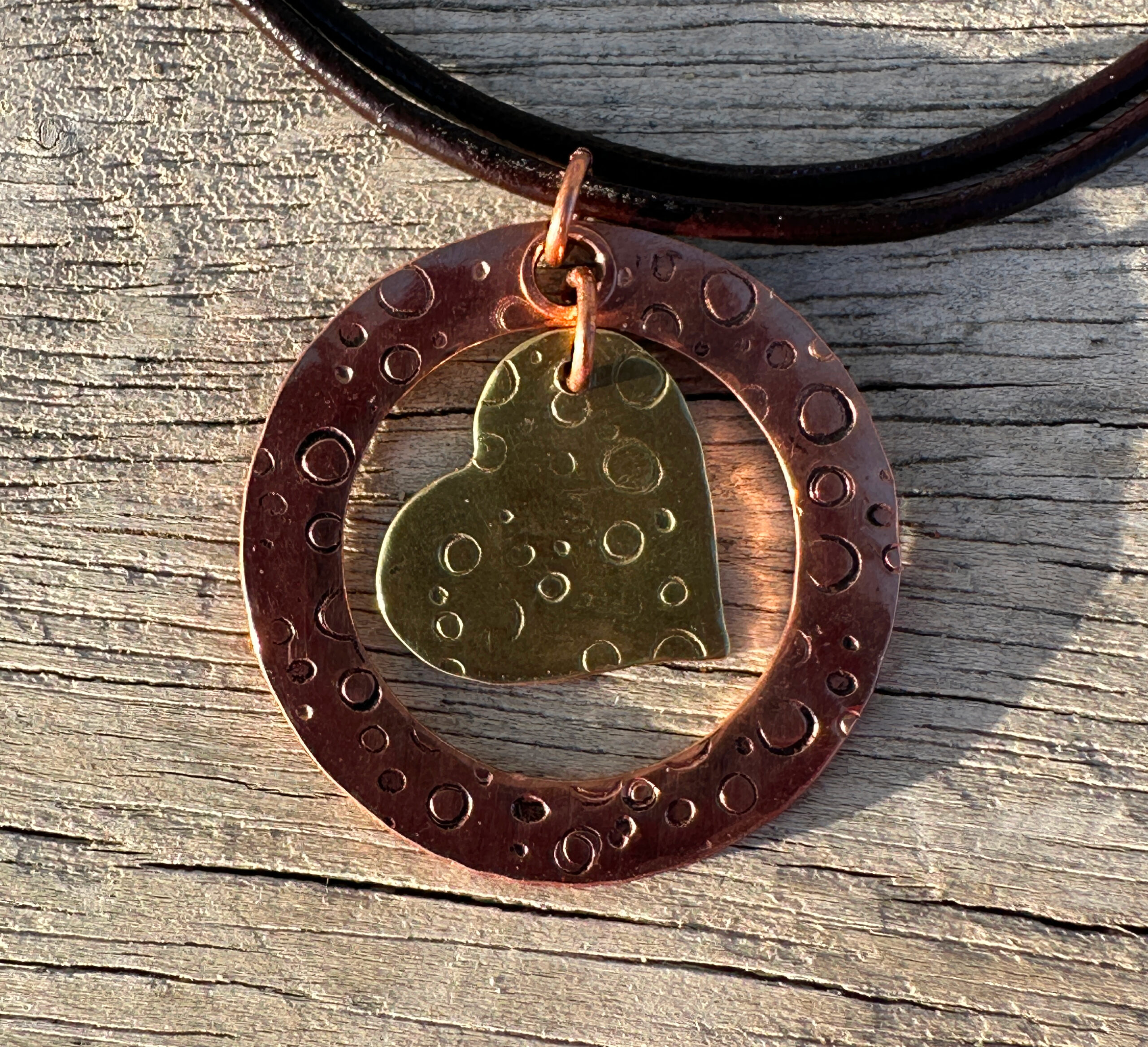 Tripawd Heart Pendant in Brass and Copper